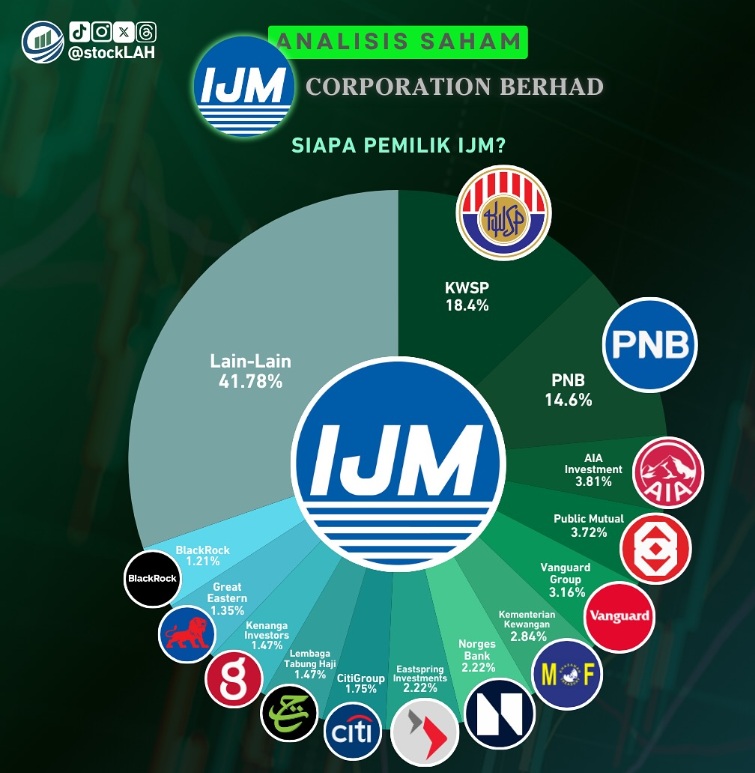 Jelas sekali: IJM Corp bukan sekadar syarikat swasta biasa. Ia sarat dengan modal institusi Bumiputera. KWSP memiliki 18.04%, PNB 14.55%, dan turut disokong oleh KWAP, Tabung Haji, Amanah Raya serta Amanah Saham Bumiputera. Jika sudah digabung, bagaimana penyimpan Tabung Haji mahu menikmati dividen yang tinggi? Banyak dividen ini dihasilkan menerusi pelaburan dalam aset strategik terutamanya lebuhraya.