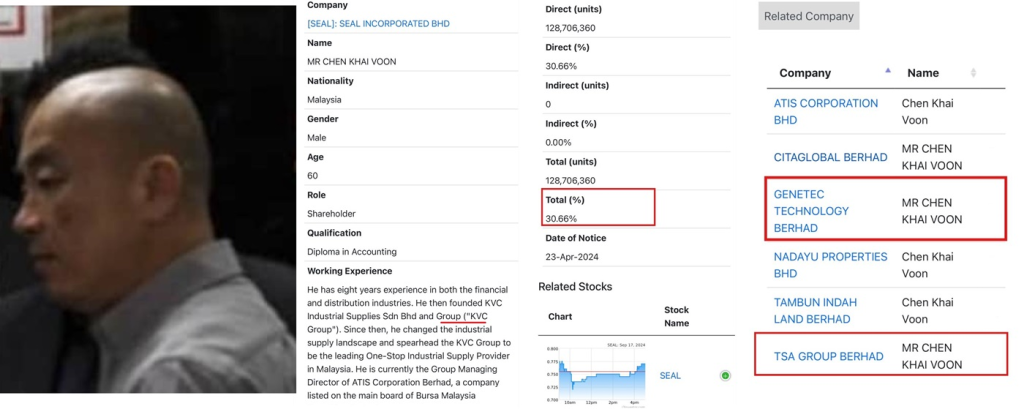 Seal Incorporated dikawal oleh seorang taikun Malaya, Aaron Chen Khai Voon, yang sebelum ini lama menyepi daripada perhatian umum namun mempunyai kabel besar dalam Tenaga Nasional Berhad. Semua perniagaannya dimulakan dengan rasuah!.